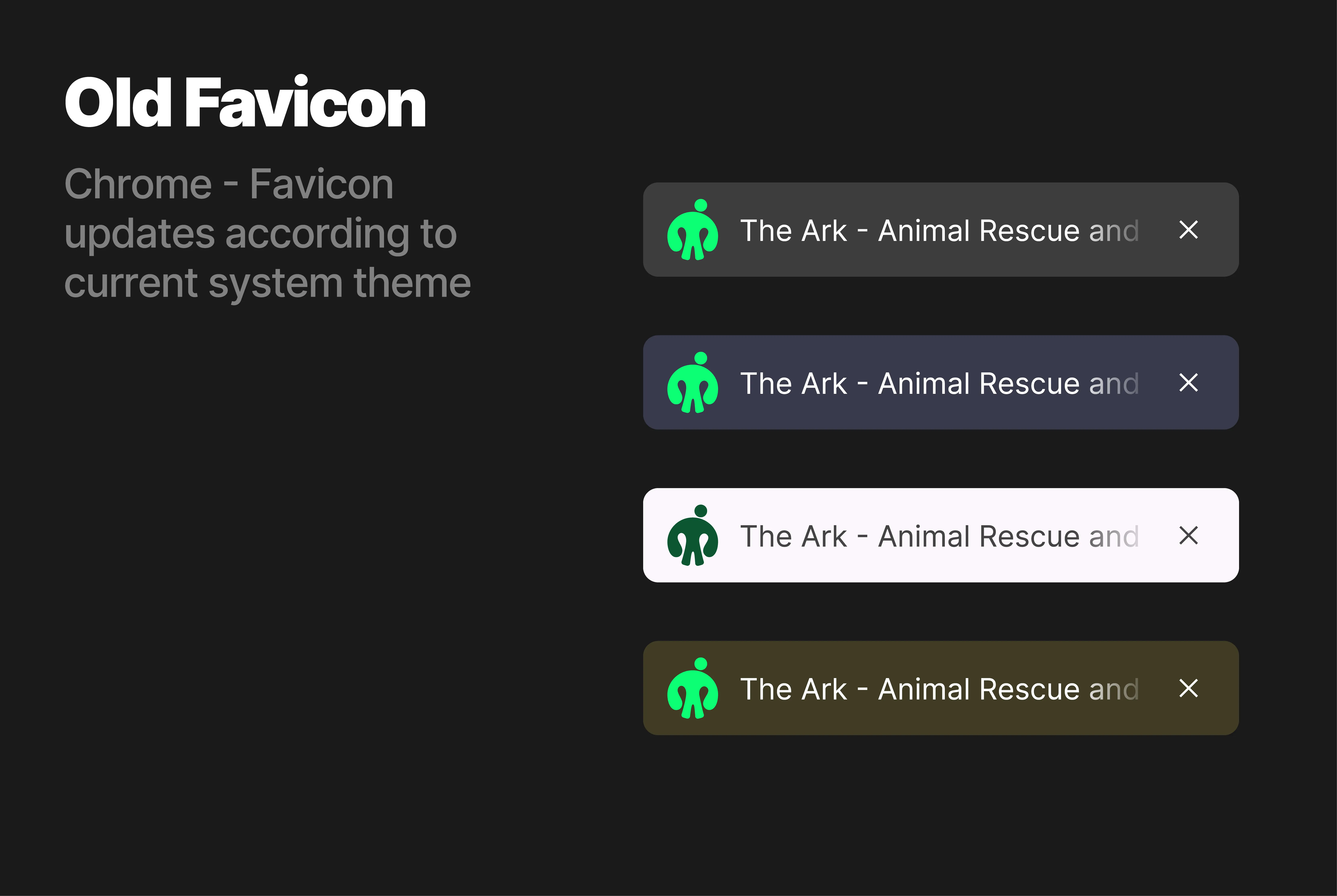 Turns out Safari cannot do this natively, you have to have specific JavaScript code to overwrite this function and force the favicons to update based on the system theme which is frustrating. This meant I had to make a favicon design that would be suitable across light and dark themes across all browsers. Chrome allows you to change the colour of your browser tabs to a range of colours too which threw another spanner in the works.