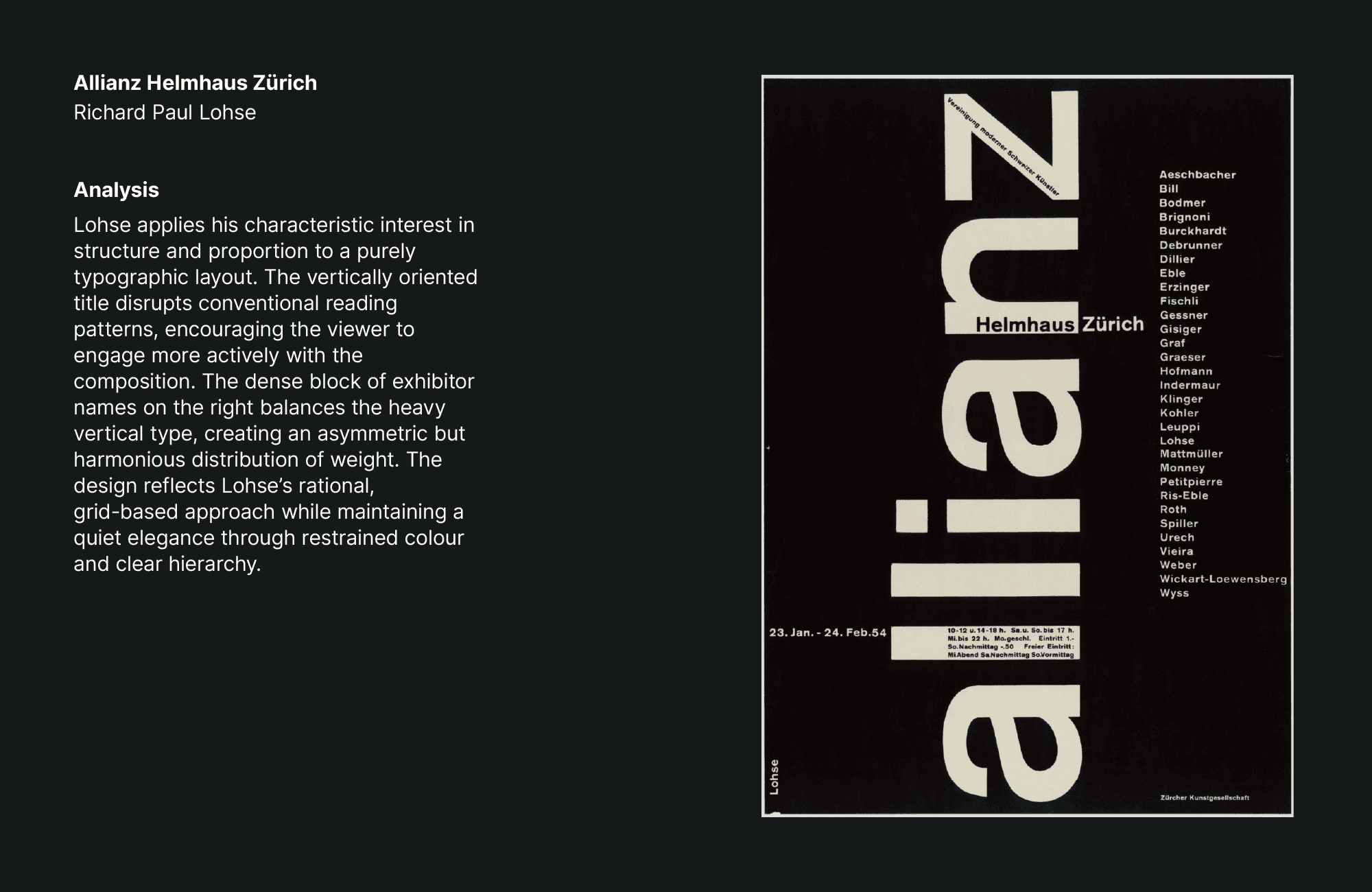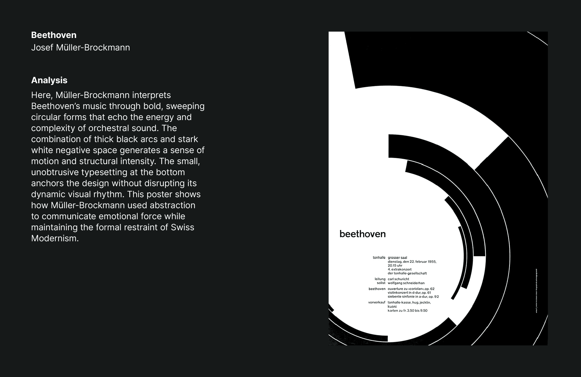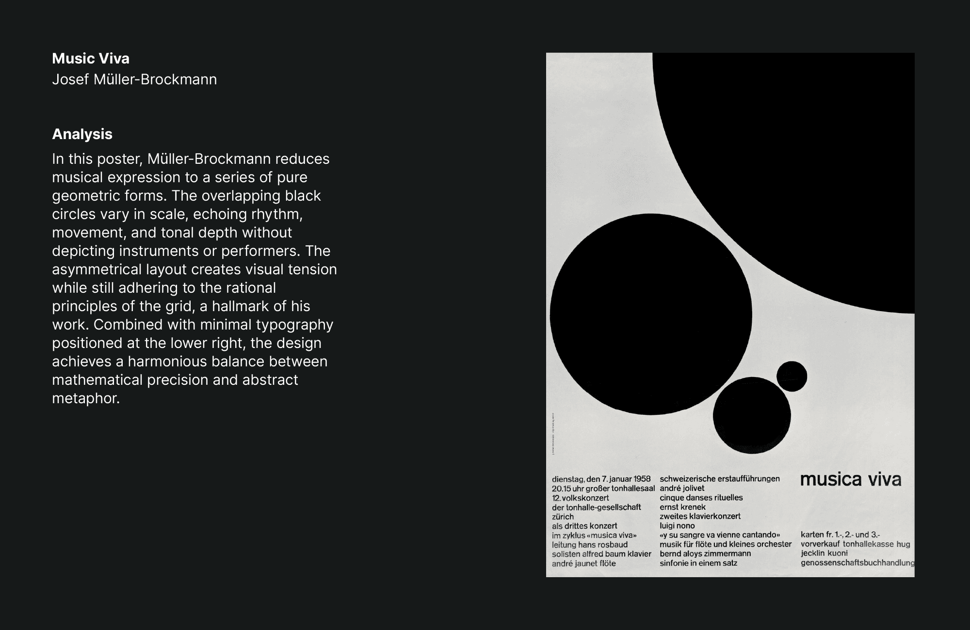 The movement developed around several key schools and teachers. The Zurich School of Arts and Crafts, led by figures like Josef Müller-Brockmann, encouraged the use of grids, sans-serif typefaces, and mathematically precise layouts. In Basel, Armin Hofmann and Emil Ruder promoted a similar approach, arguing that typography should be clear enough to transcend language. These two centres became the intellectual engines of the movement, and their ideas spread through workshops, posters, and design manuals.