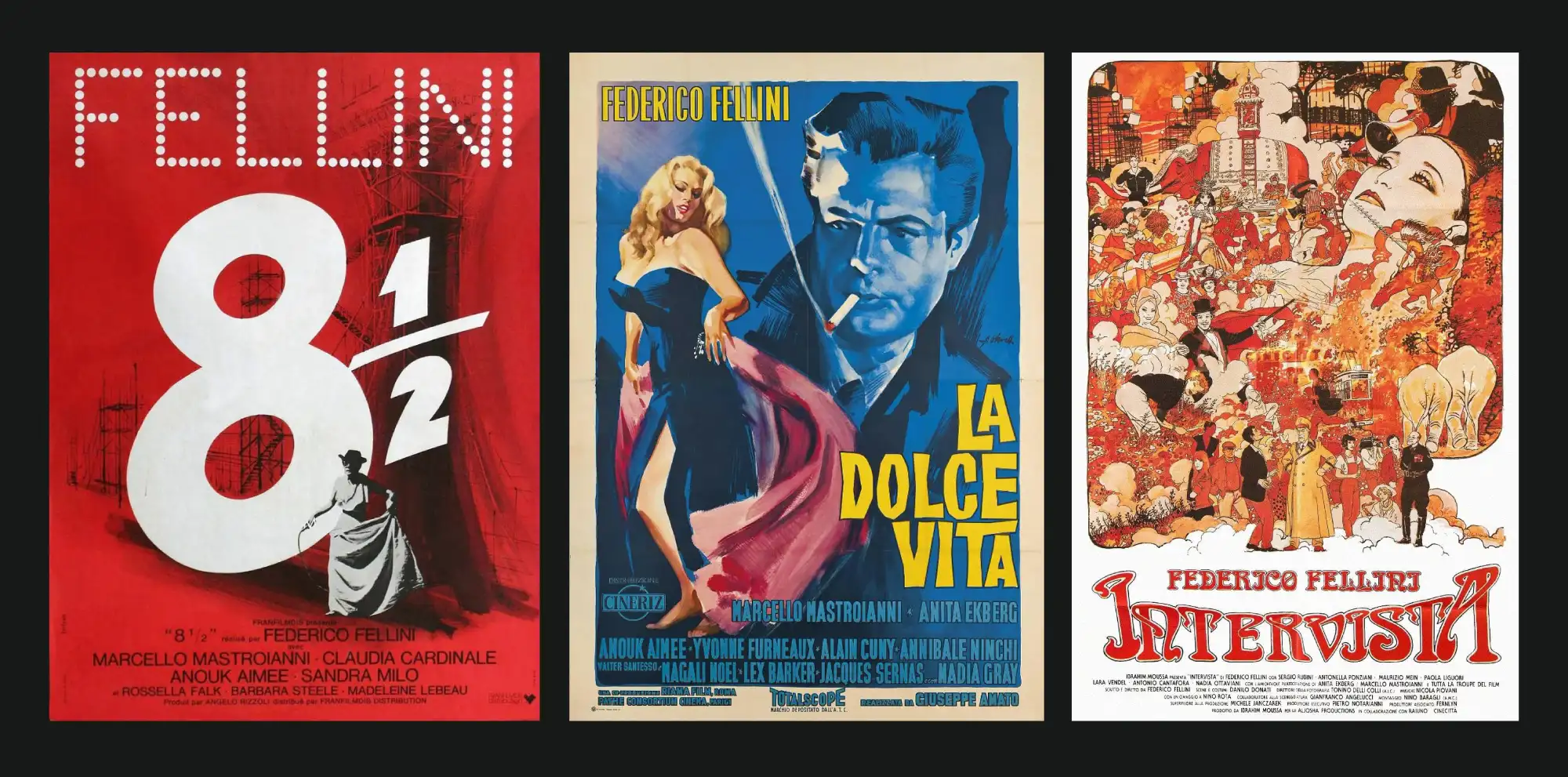By the mid-1950s, Fellini moved beyond neorealism with films such as La Strada (1954) and Nights of Cabiria (1957), both starring his wife Giulietta Masina. His international breakthrough came with La Dolce Vita (1960), a satirical portrait of modern life that blended realism and spectacle. He reached a creative peak with 8½ (1963), a dreamlike exploration of artistic imagination. Later films—including Juliet of the Spirits (1965), Fellini Satyricon (1969), Roma (1972), and Amarcord (1973)—embraced surrealism, fantasy, and autobiography.