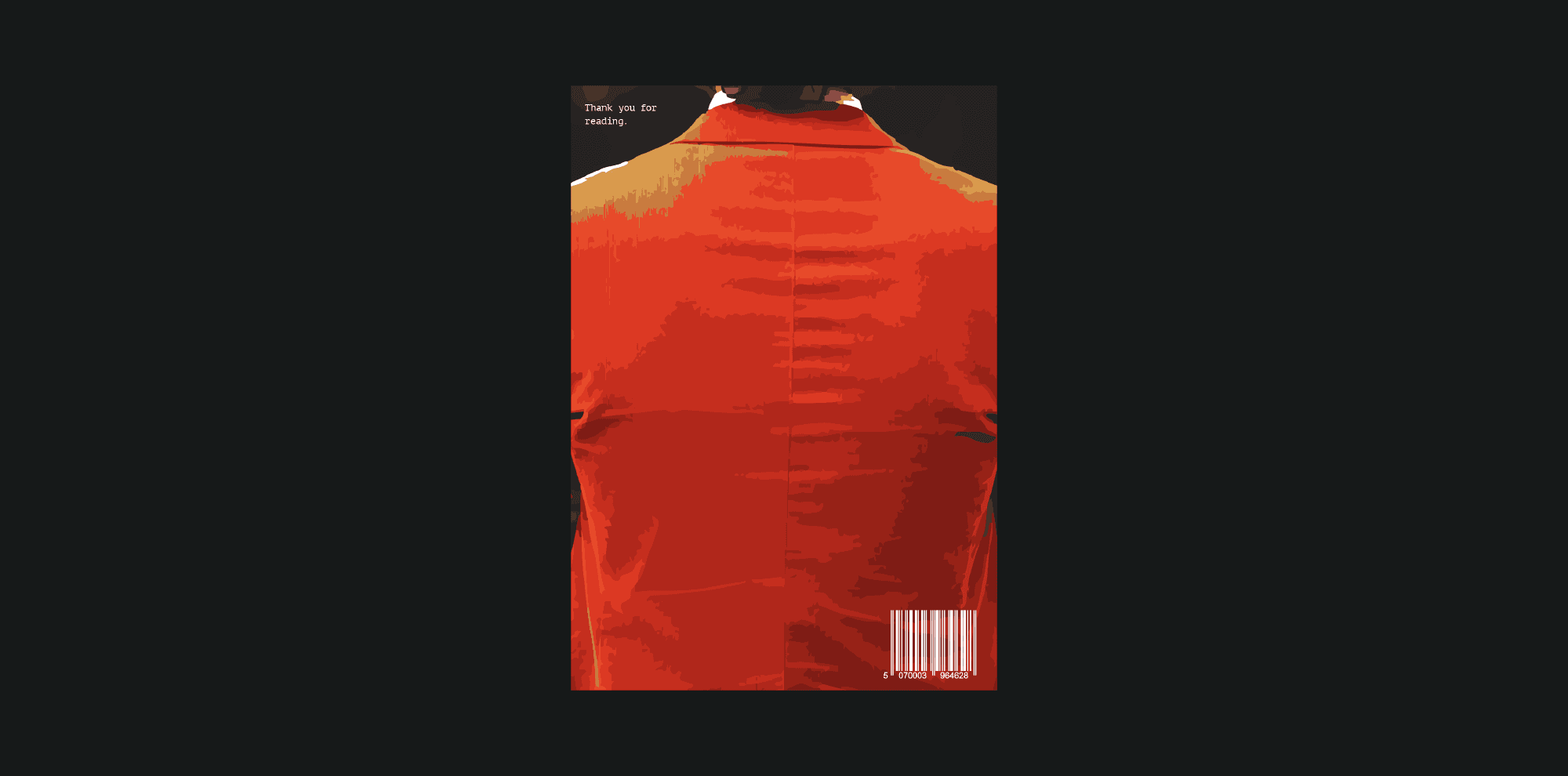 Final touches include a barcode in the bottom right and a small message that reads "thank you for reading" in the top left.