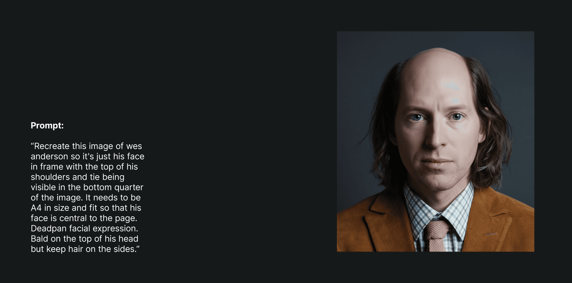 The first part of the design was to find the right image. I had a great starting point (a photograph of Anderson face on) which I then tried to manipulate. I thought with AI being so advanced now, I would give it a try. With the likes of Sora 2, which if you haven't seen - it's nuts, I thought it would be a breeze.