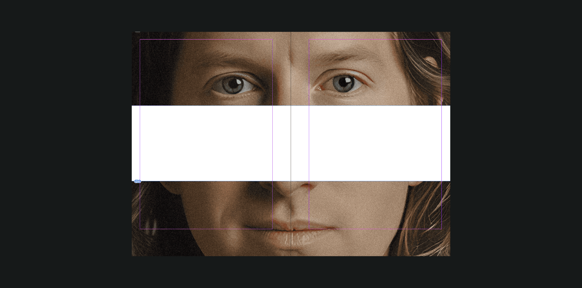 This created a very interesting visual focus that was a little strange, almost like an old-school TV that had lost signal. I then repeated these columns, made them 10mm tall and placed them 10mm below the original columns. This meant they aligned perfectly with the top line of the bottom third of the page.