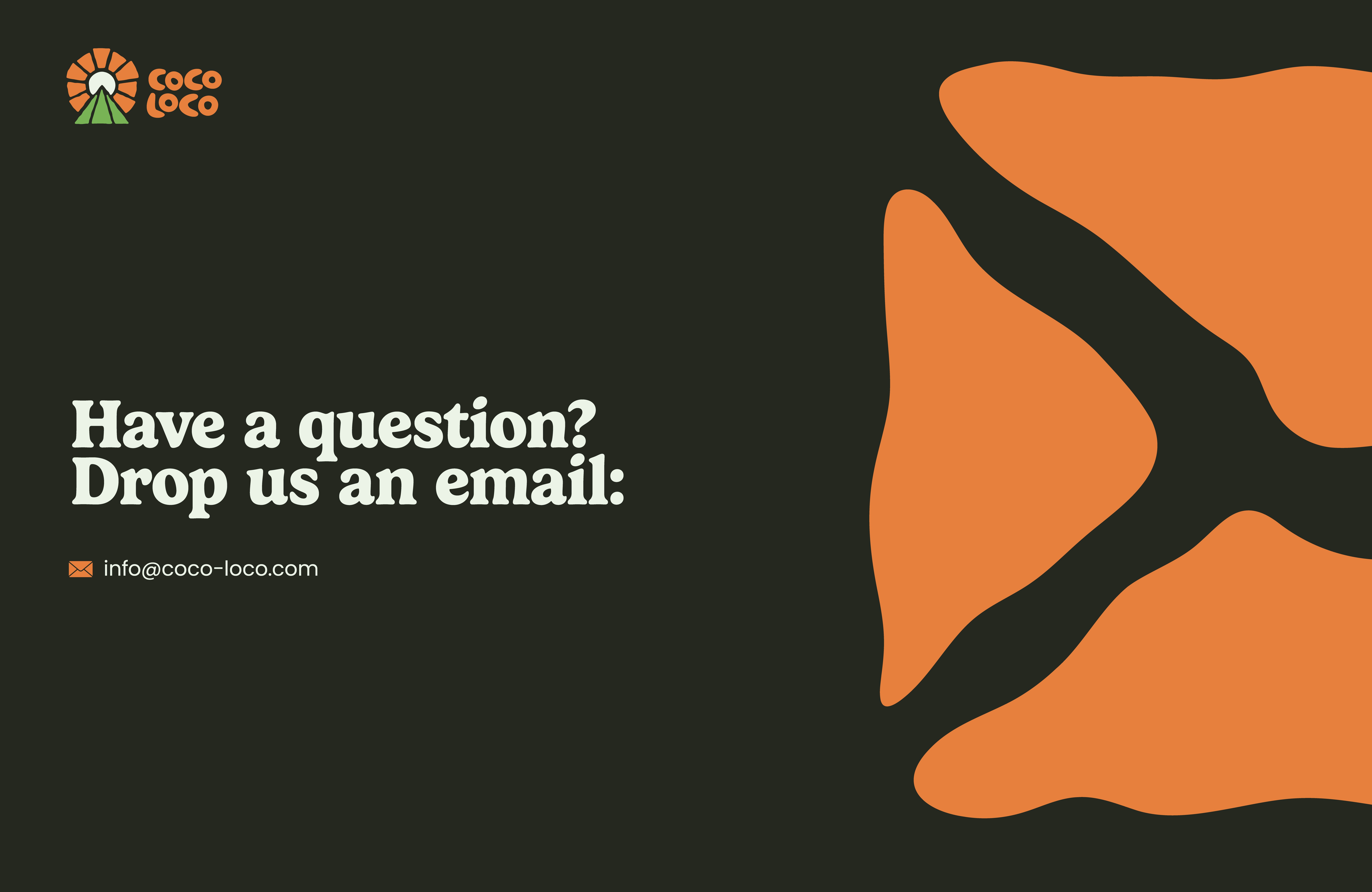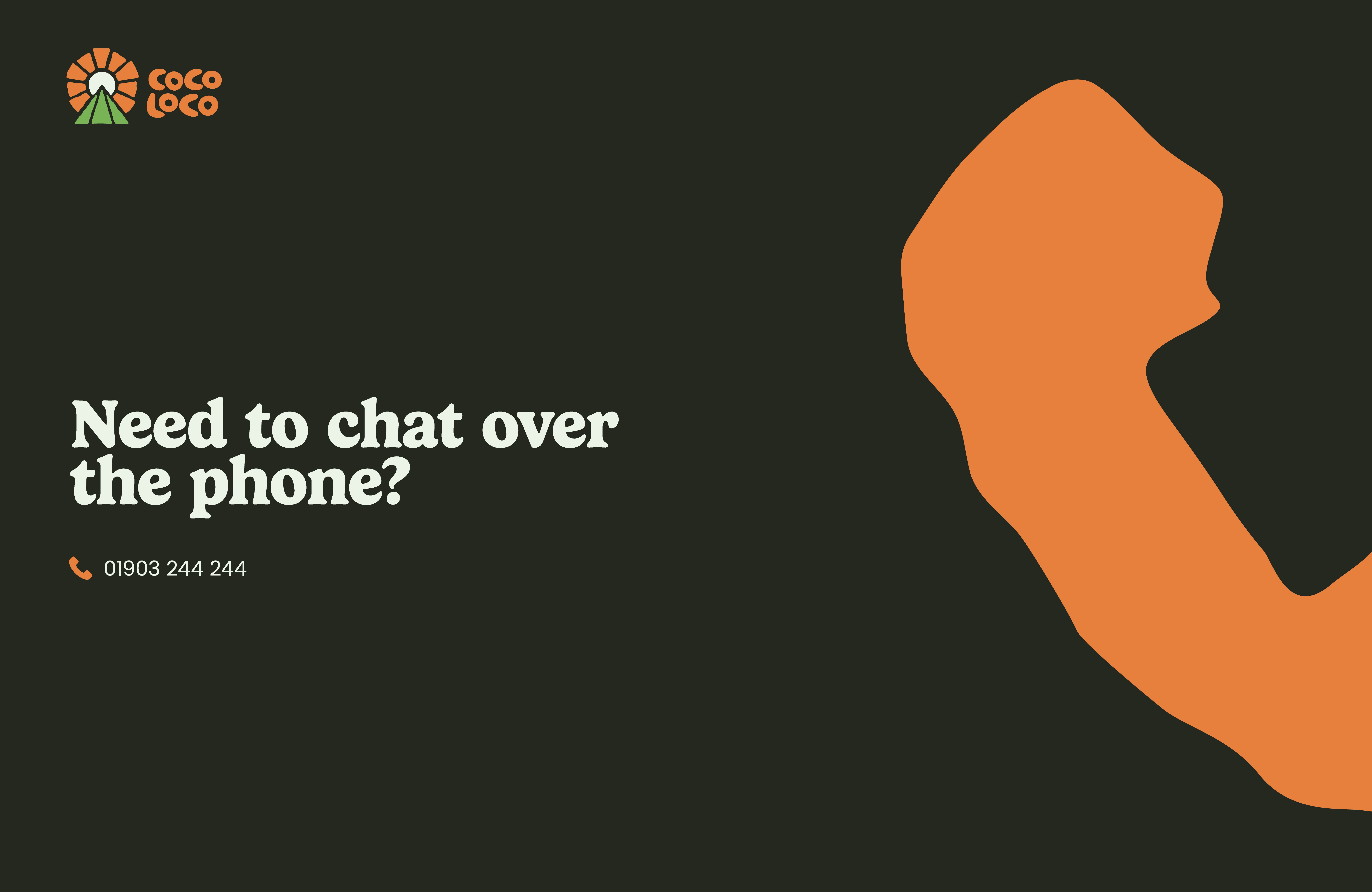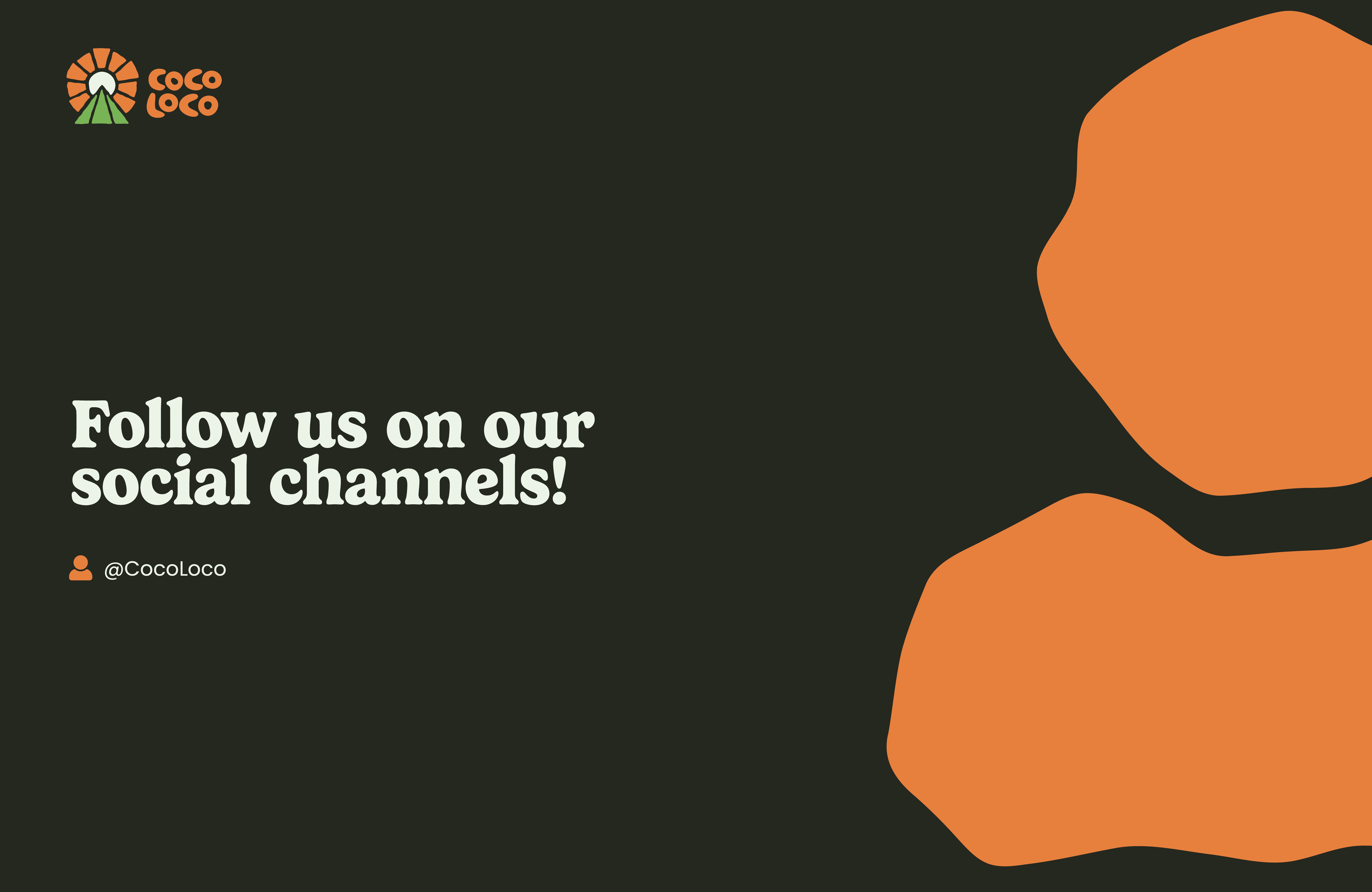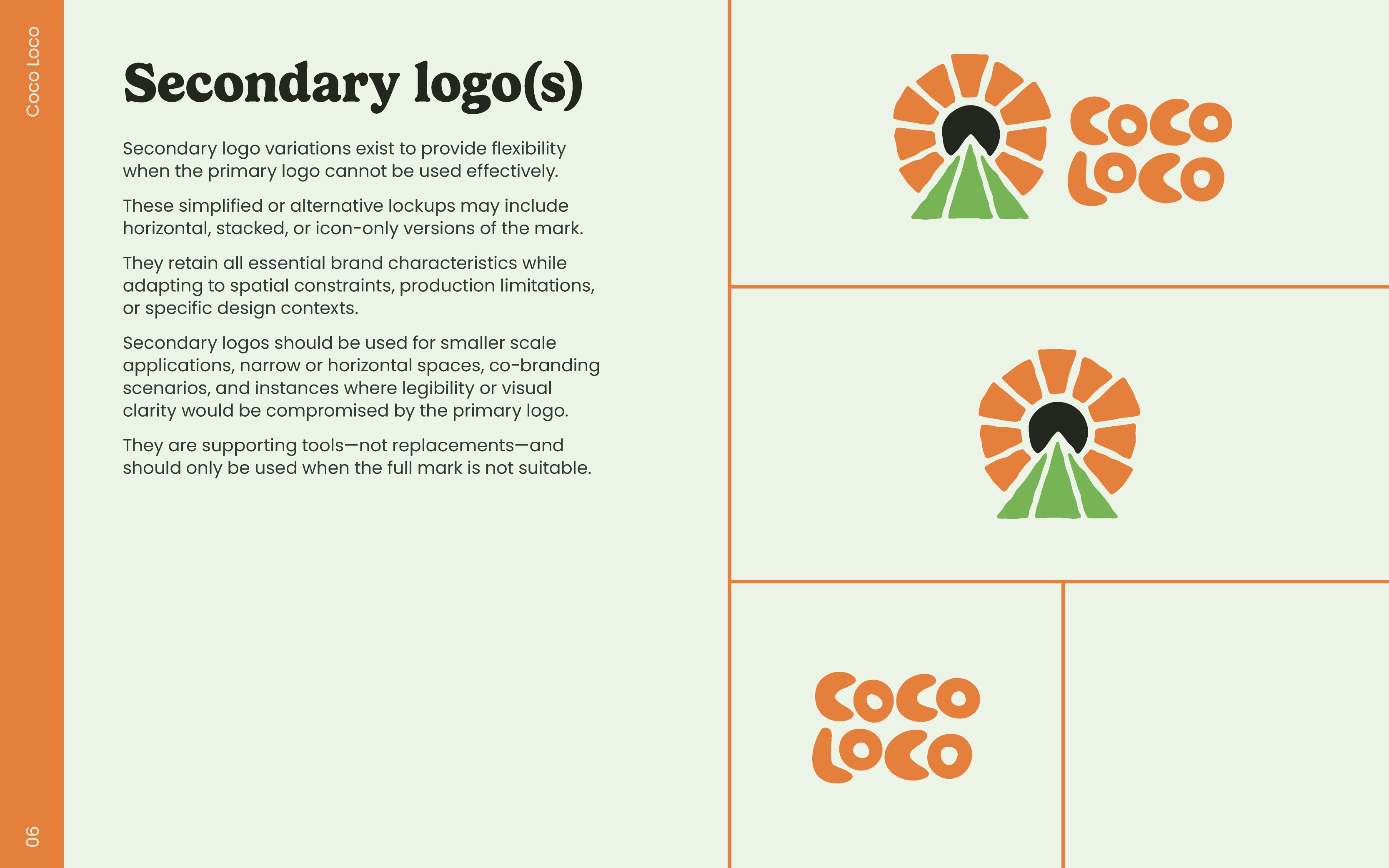 The secondary logo is a horizontally stacked version with fewer details but still explains who Coco Loco is. This is for use where space is limited but the logo is still a vital piece of information. For example bar wrappers, shelving facings, stickers, desktop web header, and invoices.