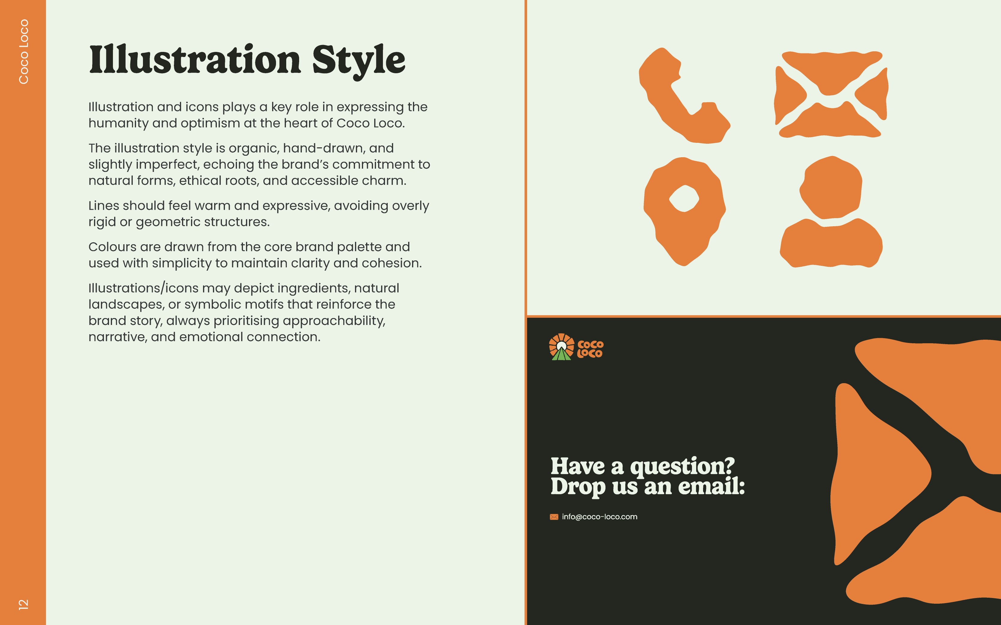 At first I tried making the illustration/icon style the same as the Coco Loco type but for similar reasons to the typeface idea from before, it wasn't effective. Instead, I took the same rustic look from the icon of the logo and applied it to a variety of icons to highlight the illustration style that Coco Loco should follow.