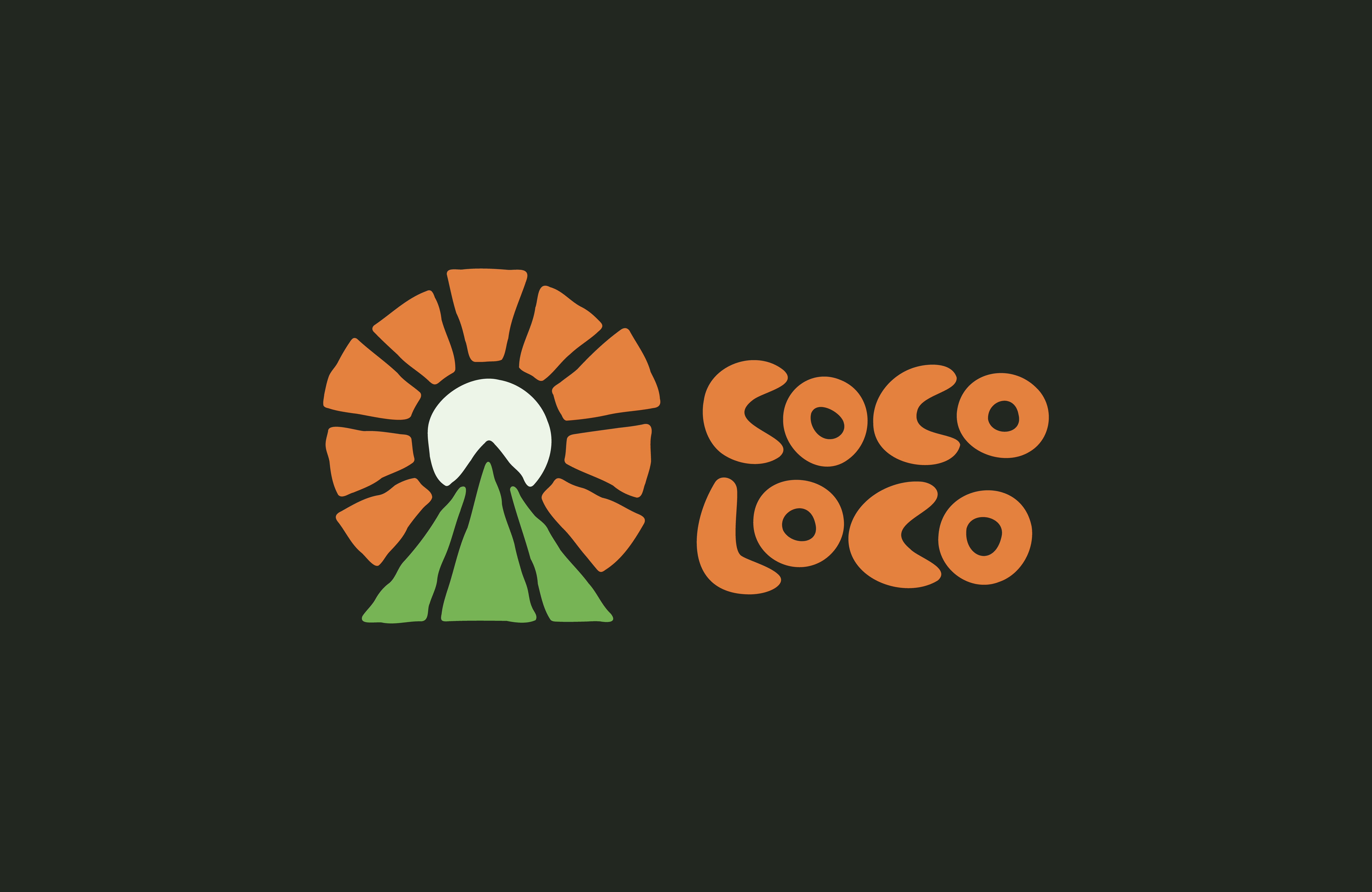 For the word-mark, it was a similar story. I chose a bold, chunky font (Alfarn 2 in this case) and applied the same effects. I had to make some tweaks to the counters of each letter, but after some subtle tweaks I had a word-mark that makes you want to say coco-loco in a funny way. Most importantly, it works well with the logo-mark.