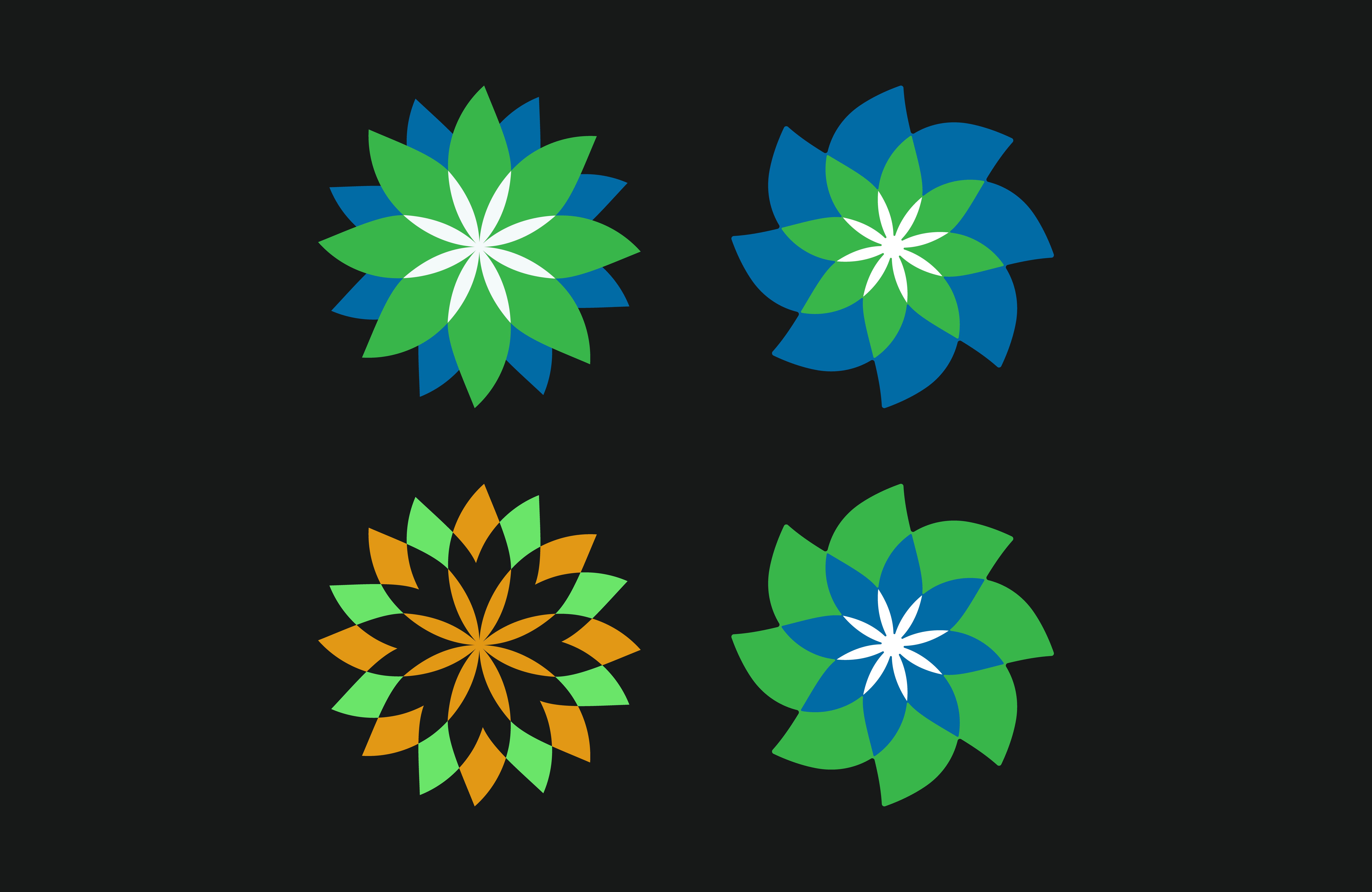 As for my other concepts, there was quite a few I really enjoyed - particularly the flower concept. There was a few issues though with the main one being it looked far too similar to the BP logo. This was completely unintentional and then it hit me, and all of a sudden the idea was rendered useless. On the bright side, the logo didn't really fit in with what I was trying to communicate anyways. I also tried a few other concepts (the white marks) which were fun experiments, but none of them felt quite right. They were either too corporate, unsuitable for the target market, or just bad designs.
