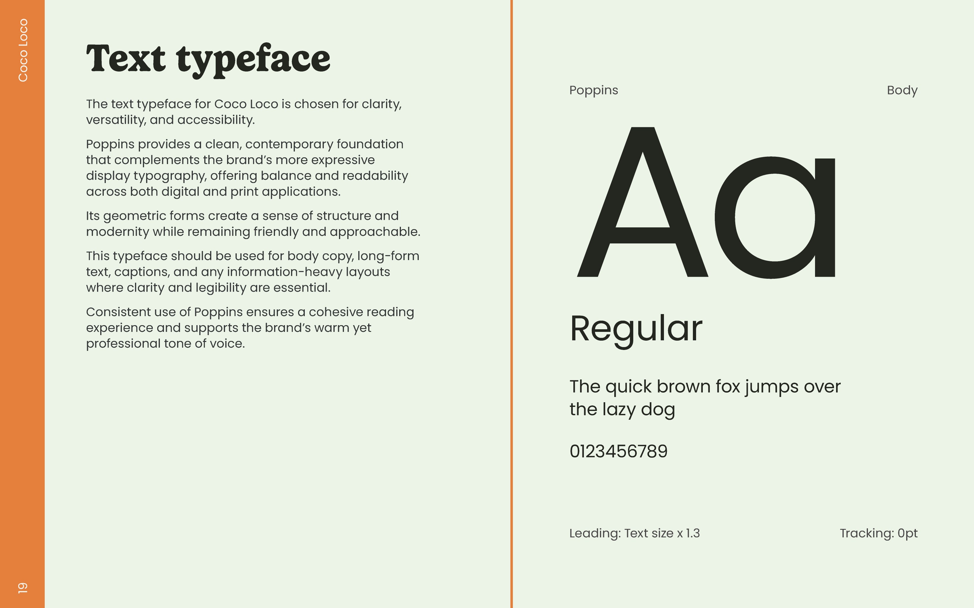 For the third typeface, I chose Poppins regular as it's a legible, yet not overly serious, sans-serif typeface that's suitable for longer bodies of text. I think Poppins is an ideal choice as it doesn't have a corporate tone like Arial, Helvetica, or Montserrat, but it does still convey professionalism whilst enriching the personality of the brand.